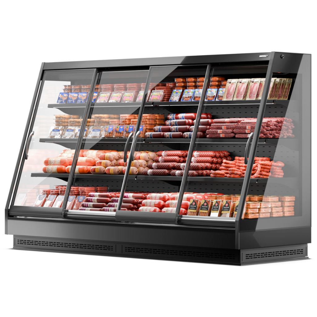 Модель оснащена распашными дверями из стеклопакета. Она отличается высокой производительностью, экономичным энергопотреблением и продуманным дизайном, обеспечивающим удобный доступ к товарам и эффектную их презентацию.