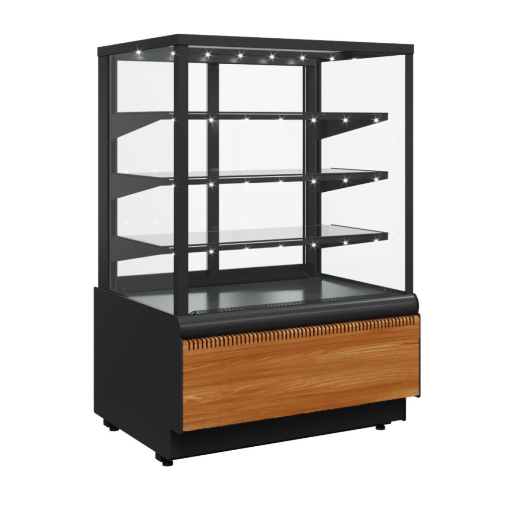 Витрина кондитерская Carboma KC70 VV 1,3-1 Standard Паттерн (0107 Ольха) — это современная витрина с холодильной системой, разработанная для хранения и эффектной презентации тортов, пирожных, муссов и других десертов. Она сочетает в себе высокую функциональность, продуманный дизайн и надёжные комплектующие, что делает её отличным решением для кафе, кондитерских, ресторанов и магазинов.