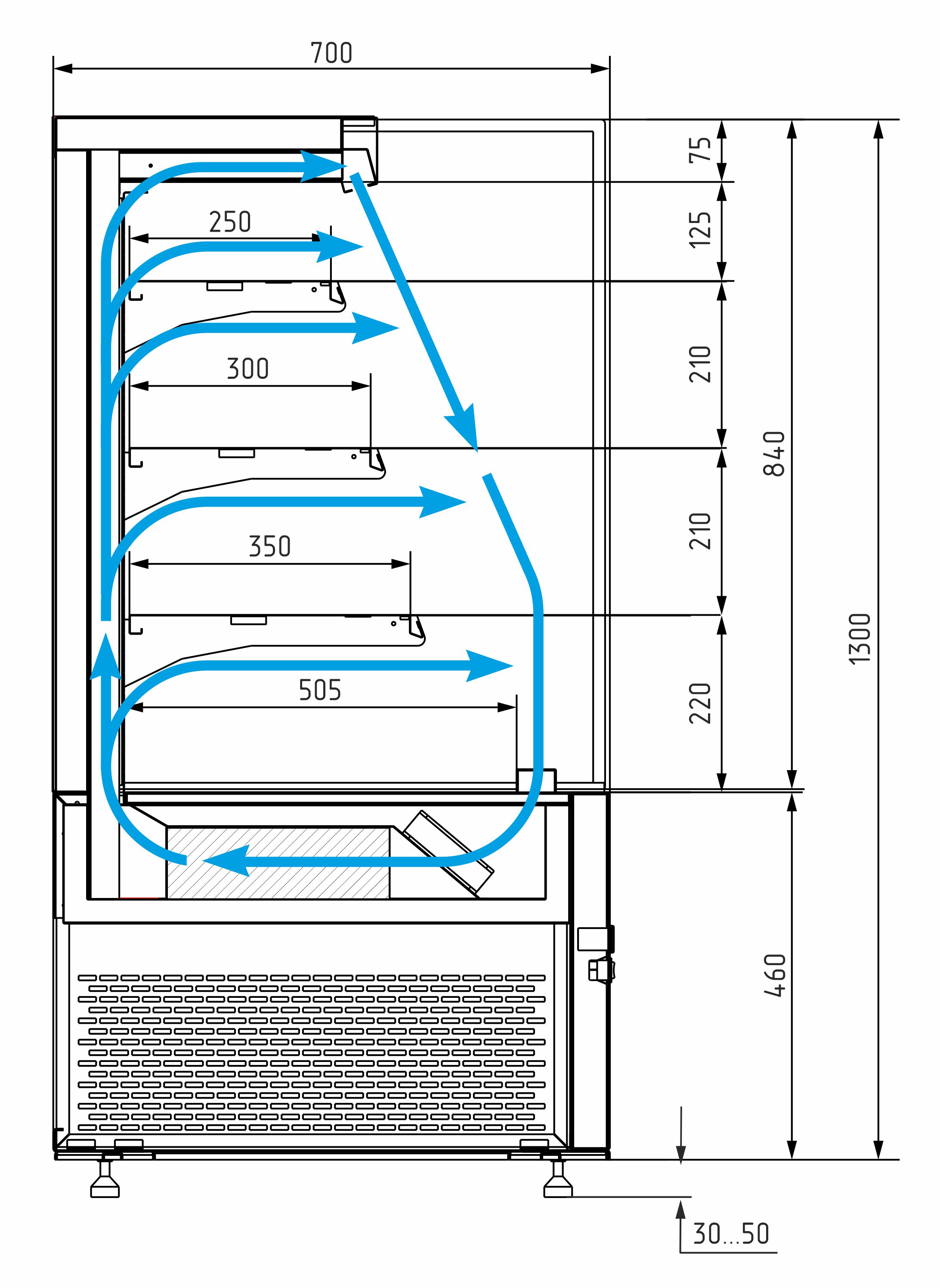 Витрина кондитерская Carboma KC71-130 VV 0,9-2 (9005) открытая предназначена для охлаждения, демонстрации и кратковременного хранения десертов, хлебобулочных и кондитерских изделий. Благодаря отсутствию фронтального стекла, обеспечивается лёгкий и быстрый доступ к продукции, что делает витрину удобной для самообслуживания.