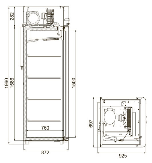 Каталог оборудования Холодильное оборудованиеШкафы холодильныеШкафы холодильные универсальные от -5 до +5 °СШкаф холодильный универсальный Polair CV107-Gm Alu Шкаф холодильный универсальный Polair CV107-Gm Alu Код товара: 062-610 Поделиться: WhatsAppTelegram СравнитьДобавить в КПВ избранное 0 149 175 ₽ В корзину 0 шт Под заказСамовывоз сегодня бесплатно Взять в кредит Купить в лизинг Получить консультацию в WhatsApp Описание Характеристики Отзывы 0 Инструкции 4 Шкаф холодильный универсальный Polair CV107-Gm Alu предназначен для демонстрации и надежного хранения продуктов на предприятиях общественного питания и торговли. Корпус шкафа цельнозаливной, выполнен из прочной стали с полимерным покрытием, что гарантирует высокую механическую прочность и длительный срок службы. Алюминиевые профили дверей и верхней панели подчеркивают современный, премиальный дизайн. Оборудование эффективно работает при температуре окружающей среды до 40 °С и влажности воздуха до 80%. Особенности модели: Многофункциональная контрольная панель (терморегулятор) для удобного управления параметрами. Жидкокристаллический дисплей, обеспечивающий чёткое отображение настроек и информации о работе шкафа. Клапан Шредера для удобного обслуживания холодильного контура. Распашной тип двери для легкого доступа к продуктам. Возможность изменить сторону открывания двери (при наличии опции), что делает установку более универсальной. Полностью интегрированные в профили дверей ручки, подчеркивающие стильный внешний вид и удобство использования. Встроенная светодиодная подсветка для отличной видимости содержимого шкафа. Надежный замок для защиты продуктов. Педаль для удобного открывания двери без использования рук. Высокая допустимая нагрузка на полку — до 40 кг, что позволяет хранить большие объемы продукции. Размер полки: GN 2/1 (530×650 мм), подходит для стандартных гастроемкостей. Толщина стенки корпуса — 43 мм, обеспечивающая отличную теплоизоляцию и снижение энергопотерь. Polair CV107-Gm Alu — это функциональный и стильный холодильный шкаф, который сочетает надежность, эргономичный дизайн и удобство эксплуатации. Использование прочных материалов и продуманная конструкция делают его идеальным решением для профессиональной кухни или торгового зала.Изображение товара, представленного на фото, может отличаться от его фактического вида. Показать все Габаритные размеры697×925×1960 ммДиапазон рабочей температурыот -5 до +5 °CДлина697 ммГлубина925 ммВысота695 ммОбъём700 лРазмер полки530×650 ммКоличество полок4 штКоличество дверей1 штТип оттайкиАвтоматическая Тип охлажденияДинамическое Тип управленияЭлектронное Материал корпусаНержавеющая сталь Тип двериМеталлическая ЗамокЕсть Способ открыванияРаспашные ХладагентR290 Холодильный агрегатВстроенный Расположение агрегатаВерхнее Потребление электроэнергии в сутки4,5 кВтПотребляемая мощность0,4 кВтНапряжение220 ВГабариты в упаковке800×1000×2150 ммВес нетто115 кгВес брутто140 кгБрендPolairВсе шкафы холодильные универсальные от -5 до +5 °С Из нержавейки Оставить отзыв Еще никто не оставил отзыв на этот товар Схема POLAIR CV107-Gm Alu.jpgИнструкция на POLAIR CV107-Gm Alu.pdfДекларация о соответствии.pdfСертификат соответствия.pdf Похожие товары Перейти в каталог Под заказ 89 562 ₽ Шкаф холодильный универсальный Ангара 700 БК Под заказ 115 687 ₽ Шкаф холодильный универсальный Polair CV105-Sm Alu Под заказ 94 164 