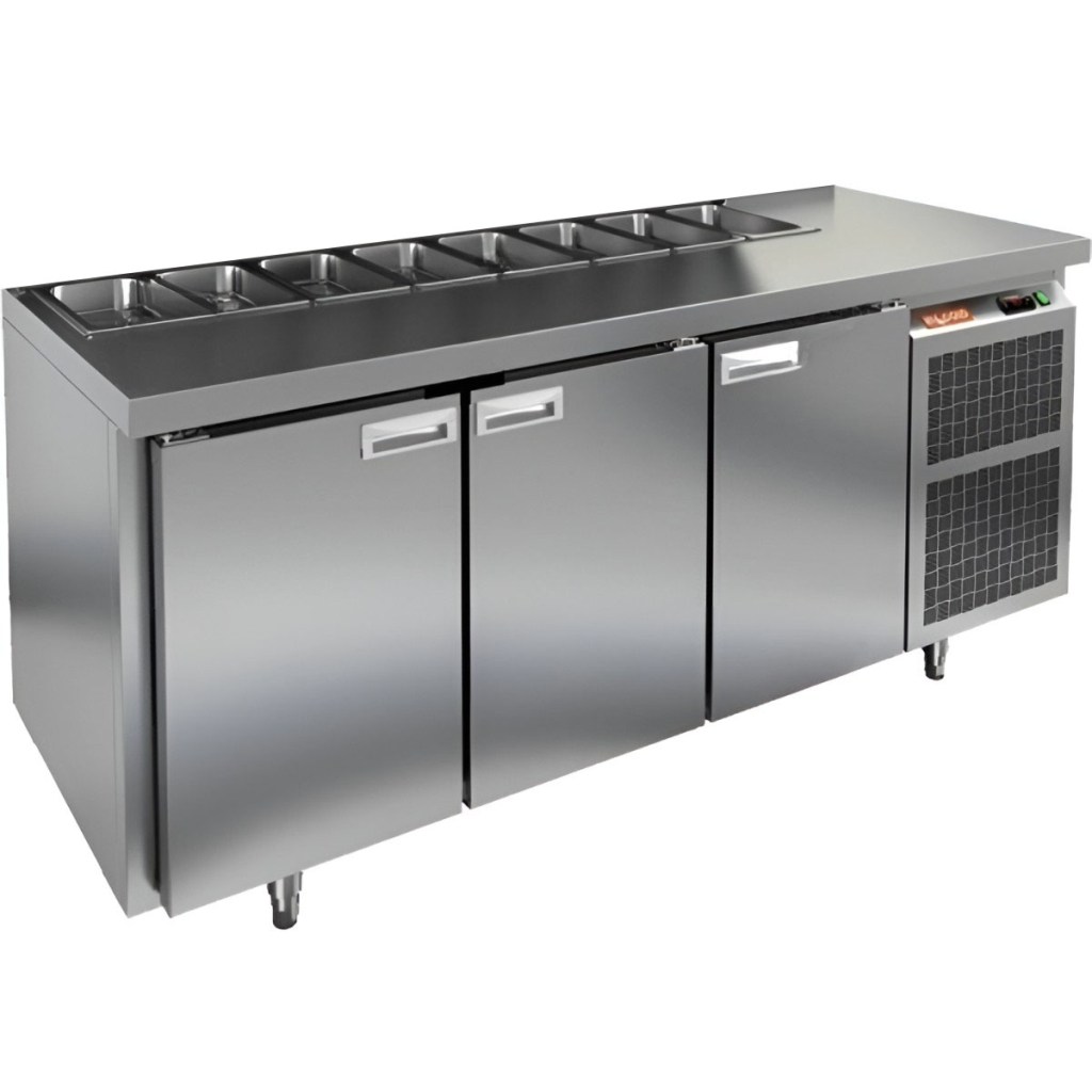 Каталог оборудования Холодильное оборудованиеСтолы охлаждаемыеСтолы холодильные для салатовСтол холодильный для салатов HiCold SL1-111GN (1/3) О без крышки Стол холодильный для салатов HiCold SL1-111GN (1/3) О без крышки Код товара: 064-521 Поделиться: WhatsAppTelegram СравнитьДобавить в КПВ избранное 0 163 612 ₽ В корзину 0 шт Под заказСамовывоз сегодня бесплатно Взять в кредит Купить в лизинг Получить консультацию в WhatsApp Описание Характеристики Отзывы 0 Инструкции 2 Стол холодильный для салатов HiCold SL1-111GN (1/3) О без крышки предназначен для предприятий общественного питания и торговли. Он обеспечивает хранение и подготовку ингредиентов для пиццы, салатов и других блюд, а также охлаждение и кратковременное хранение скоропортящихся продуктов. Модель сочетает рабочую поверхность и холодильный объем, позволяя повару иметь все необходимые компоненты под рукой. Корпус и столешница выполнены из нержавеющей стали, обеспечивая надежность и долговечность. Особенности: Динамическая система охлаждения — равномерное распределение температуры внутри холодильного объема. Автоматическая оттайка — упрощает уход за оборудованием. Электронная панель управления — точная настройка температуры и режимов работы. 3 вместительные внутренние полки формата GN 1/1 — удобное хранение ингредиентов. Автоматические доводчики дверей с фиксатором открытого положения — комфорт и безопасность работы. Легкозаменяемые магнитные уплотнители — простота обслуживания. Открытая агрегатная часть — облегчает доступ для обслуживания. Регулируемые по высоте ножки — адаптация к рабочей поверхности. Столешница без борта и без крышки, толщина столешницы и теплоизоляции 50 мм — надежная защита и удобство работы. Размер полки: 530×325мм (GN 1/1) Максимальная глубина гастроемкостей: 100 мм HiCold SL1-111GN (1/3) О без крышки — многофункциональный и надежный стол для профессиональной кухни. Обеспечивает удобство работы, эффективное охлаждение и безопасное хранение продуктов. Мобильная модификация с колёсами позволяет легко перемещать стол, что делает его идеальным для ресторанов, кафе и пиццерий.Изображение товара, представленного на фото, может отличаться от его фактического вида. Показать все Габаритные размеры1835×700×850 ммДиапазон рабочей температурыот +2 до +10 °CРасположение агрегатаБоковое Материал столешницыНержавеющая Тип столаС дверьми Тип двериГлухая Объём505 лКоличество дверей3 штТип гастроемкостейGN 1/3 Размер полки530×325 ммНапряжение220 ВМощность0,46 кВтТип охлажденияДинамический Тип оттайкиАвтоматическая СтолешницаБез борта Вес нетто120 кгВес брутто183 кгБрендHicold Оставить отзыв Еще никто не оставил отзыв на этот товар Паспорт на HICOLD SL1-111GN О.pdfДекларация о соответствии.pdf Ранее просмотрено Под заказ 209 962 ₽ Стол холодильный для салатов HiCold SL1-133GN (1/3) с крышкой Под заказ 235 162 ₽ Стол холодильный для салатов HiCold SLE1-222GN (1/3) О без крышки Под заказ 255 412 ₽ Стол холодильный для салатов HiCold SL1-222GN (1/3) без крышки Под заказ 139 671 ₽ Стол холодильный для салатов HiCold SL1-11SN (1/3) О без крышки Под заказ 166 222 ₽ Стол холодильный для салатов HiCold SL1-11GN (1/3) О М с крышкой В наличии 162 702 ₽ Шкаф морозильный с глухой дверью TEFCOLD GUF70 нержавеющий Под заказ 259 191 ₽ Агрегат компрессорный-конденсаторный МХМ БКК ZB-30