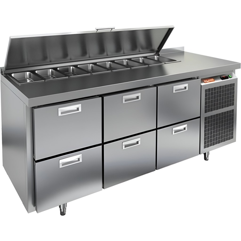 Каталог оборудования Холодильное оборудованиеСтолы охлаждаемыеСтолы холодильные для салатовСтол холодильный для салатов HiCold SL1-222GN (1/3) с крышкой Стол холодильный для салатов HiCold SL1-222GN (1/3) с крышкой Код товара: 064-844 Поделиться: WhatsAppTelegram СравнитьДобавить в КПВ избранное 0 260 092 ₽ В корзину 0 шт Под заказСамовывоз сегодня бесплатно Взять в кредит Купить в лизинг Получить консультацию в WhatsApp Описание Характеристики Отзывы 0 Инструкции 1 Стол холодильный для салатов HiCold SL1-222GN (1/3) предназначен для использования на предприятиях общественного питания и торговли. Он объединяет рабочую поверхность и охлаждаемый отсек, что делает его удобным решением для хранения, охлаждения и подготовки ингредиентов при приготовлении салатов, пиццы и других блюд. Такая конструкция позволяет повару работать быстрее и эффективнее, так как все необходимые продукты находятся под рукой. Корпус и столешница выполнены из прочной нержавеющей стали, устойчивой к коррозии и легко поддающейся санитарной обработке.Металлическая крышка защищает продукты от загрязнений и сохраняет их свежесть. Особенности модели: Электронная панель управления — точная настройка температурного режима. 6 выдвижных ящика — быстрое размещение и замена продуктов. Вместимость салат-бара — до 8 гастроемкостей глубиной до 100 мм. Автоматические доводчики — комфорт при загрузке/выгрузке. Легкозаменяемые магнитные уплотнители — надежная герметичность. Открытая агрегатная часть — быстрый доступ для обслуживания. Регулируемые по высоте ножки — устойчивость даже на неровном полу. Толщина столешницы, борта и теплоизоляции — 50 мм, что обеспечивает прочность и энергоэффективность конструкции. HiCold SL1-222GN (1/3) — практичное и удобное решение для профессиональной кухни, обеспечивающее удобную подготовку и хранение ингредиентов.Изображение товара, представленного на фото, может отличаться от его фактического вида. Показать все Габаритные размеры1835×700×850 ммДиапазон рабочей температурыот +2 до +10 °CРасположение агрегатаБоковое Материал столешницыНержавеющая Тип столаС ящиками Объём505 лТип гастроемкостейGN 1/3 Количество ящиков6 штРазмер полки530×325 ммНапряжение220 ВМощность0,46 кВтТип охлажденияДинамическое Тип оттайкиАвтоматическая СтолешницаС бортом Габариты в упаковке2000×850×1000 ммВес нетто120 кгВес брутто140 кгБрендHicold Оставить отзыв Еще никто не оставил отзыв на этот товар Декларация о соответствии.pdf Ранее просмотрено Под заказ 107 200 ₽ Витрина кондитерская Carboma K70 N 0,9-1 Light Паттерн (0108 Темный дуб) нейтральная Под заказ 268 381 ₽ Компрессорно-конденсаторный блок Север ACM-ZB21 Под заказ 139 671 ₽ Стол холодильный для салатов HiCold SL1-11SN (1/3) О без крышки Под заказ 166 222 ₽ Стол холодильный для салатов HiCold SL1-11GN (1/3) О М с крышкой В наличии 162 702 ₽ Шкаф морозильный с глухой дверью TEFCOLD GUF70 нержавеющий Под заказ 259 191 ₽ Агрегат компрессорный-конденсаторный МХМ БКК ZB-30 В наличии 115 912 ₽ Витрина кондитерская Kayman K-ВК-900 люкс квадро серебро