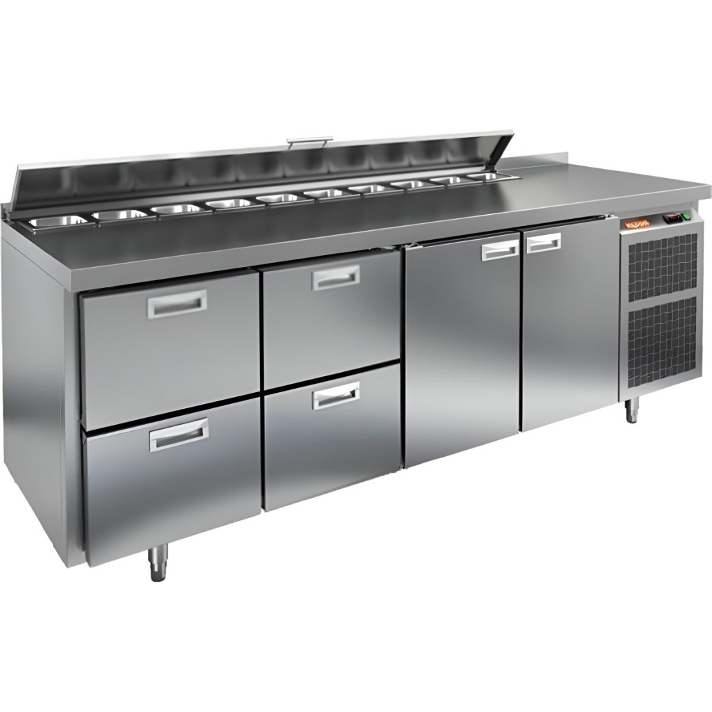 Каталог оборудования Холодильное оборудованиеСтолы охлаждаемыеСтолы холодильные для салатовСтол холодильный для салатов HiCold SL2-2211GN (1/6) с крышкой Стол холодильный для салатов HiCold SL2-2211GN (1/6) с крышкой Код товара: 064-823 Поделиться: WhatsAppTelegram СравнитьДобавить в КПВ избранное 0 258 922 ₽ В корзину 0 шт Под заказСамовывоз сегодня бесплатно Взять в кредит Купить в лизинг Получить консультацию в WhatsApp Описание Характеристики Отзывы 0 Инструкции 1 Стол холодильный для салатов HiCold SL2-2211GN (1/6) с крышкой предназначен для использования на предприятиях общественного питания и торговли. Он подходит для хранения, обработки и кратковременного охлаждения ингредиентов, применяемых при приготовлении пиццы, салатов, закусок и других блюд. Модель совмещает охлаждаемый объем и рабочую поверхность, что значительно повышает удобство и скорость работы персонала. Корпус и столешница выполнены из прочной и гигиеничной нержавеющей стали, устойчивой к влаге, загрязнениям и механическим повреждениям. Металлическая крышка защищает продукты от загрязнений и сохраняет их свежесть. Особенности модели: Электронная панель управления — точная настройка температуры. Салат-бар на 11 гастроемкостей — быстрый доступ к ингредиентам. 4 внутренних ящика — удобное размещение продуктов. 2 двери с автоматическими доводчиками — комфортный доступ к холодильному отсеку. Съёмные магнитные уплотнители — герметичность и стабильная температура. Открытая агрегатная часть — лёгкое обслуживание. Регулируемые ножки — установка на любой поверхности. Глубина гастроемкостей до 150 мм, столешница и теплоизоляция — 50 мм. Высота борта — 50 мм — защита рабочей поверхности. HiCold SL2-2211GN (1/6) с крышкой — универсальное и функциональное решение для профессиональной кухни, позволяющее оптимизировать рабочие процессы и повысить производительность за счет удобного хранения и быстрого доступа к ингредиентам.Изображение товара, представленного на фото, может отличаться от его фактического вида. Показать все Габаритные размеры2280×700×850 ммДиапазон рабочей температурыот +2 до +10 °CРасположение агрегатаБоковое Материал столешницыНержавеющая Тип столаС дверьми Тип двериГлухая Объём660 лКоличество дверей2 штТип гастроемкостейGN 1/6 Количество ящиков4 штРазмер полки530×325 ммНапряжение220 ВМощность0,48 кВтТип охлажденияДинамическое Тип оттайкиАвтоматическая СтолешницаС бортом Габариты в упаковке2420×850×1000 ммВес нетто155 кгВес брутто210 кгБрендHicold Оставить отзыв Еще никто не оставил отзыв на этот товар Декларация о соответствии.pdf Ранее просмотрено Под заказ 139 671 ₽ Стол холодильный для салатов HiCold SL1-11SN (1/3) без крышки Под заказ 127 432 ₽ Стол холодильный для салатов HiCold SLE2-11GN (1/6) З с крышкой Под заказ 152 452 ₽ Стол холодильный для салатов HiCold SLE2-111GN (1/6) О З с крышкой Под заказ 239 392 ₽ Стол холодильный для салатов HiCold SLE1-222GN (1/3) О с крышкой Под заказ 139 225 ₽ Витрина холодильная морозильная Premier ВНУП1-0,26ТУ/Янтарь-1,6 Под заказ 163 161 ₽ Стол холодильный для салатов HiCold SL1-111SN (1/3) О без крышки Под заказ 260 092 ₽ Стол холодильный для салатов HiCold SL1-222GN (1/3) с крышкой