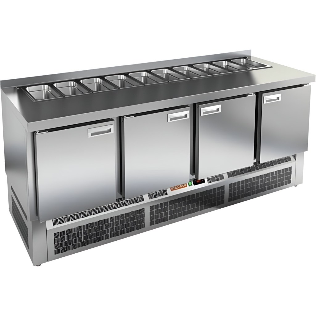 Модель совмещает рабочую поверхность и охлаждаемый объем, что обеспечивает удобство работы повара: все необходимые компоненты всегда под рукой. Корпус и столешница выполнены из нержавеющей стали, что гарантирует долговечность и простоту ухода.