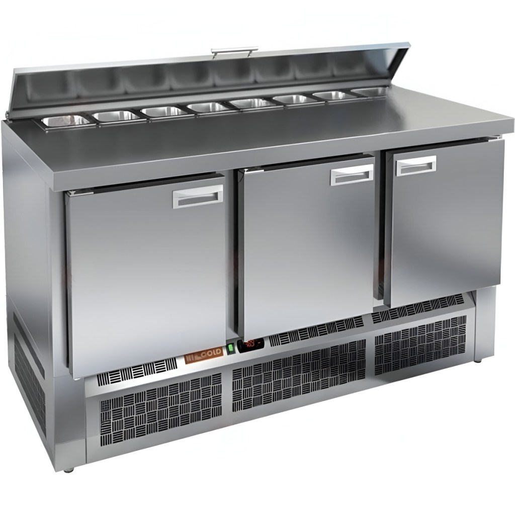 Стол холодильный для салатов HiCold SLE2-111GN (1/6) О З М с крышкой предназначен для предприятий общественного питания и торговли. Он используется для хранения, охлаждения и обработки ингредиентов, применяемых при приготовлении салатов, пиццы, закусок и других блюд.