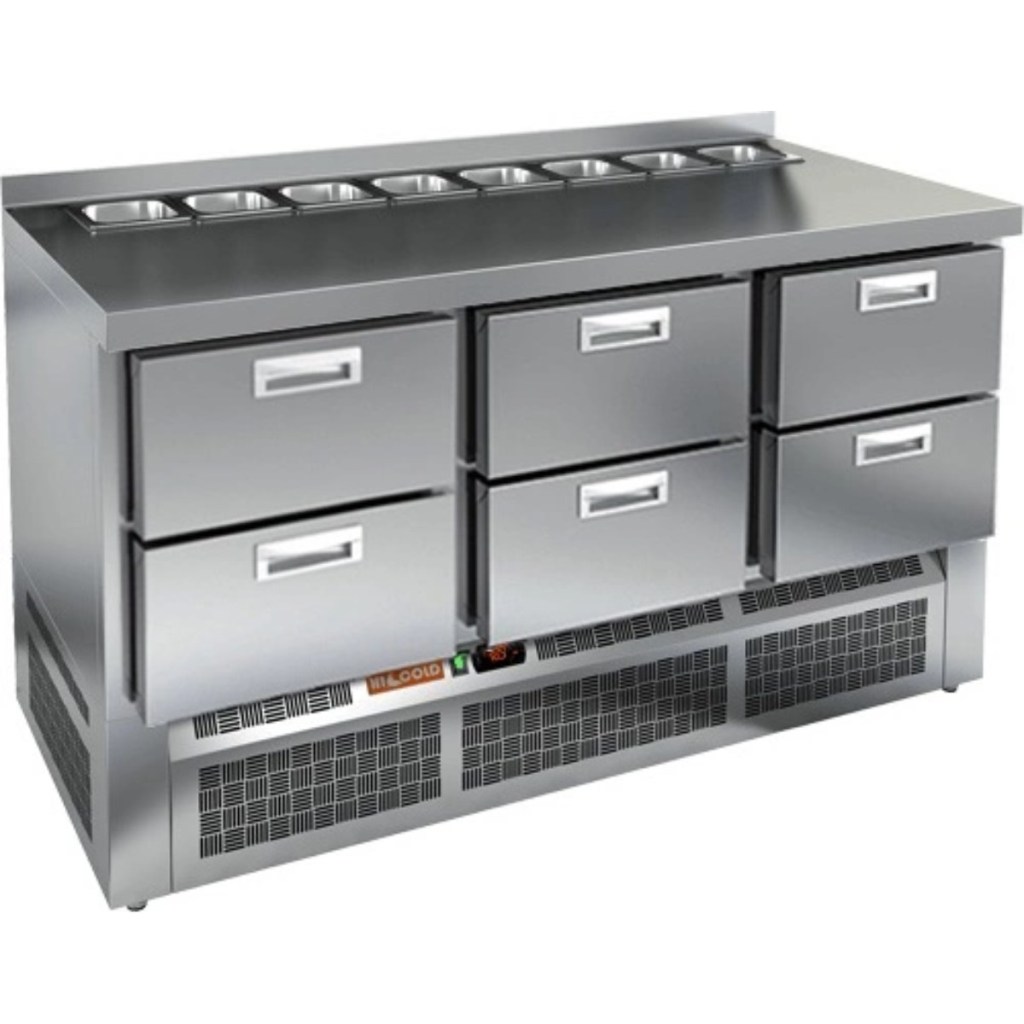 Каталог оборудования Холодильное оборудованиеСтолы охлаждаемыеСтолы холодильные для салатовСтол холодильный для салатов HiCold SLE2-222GN (1/6) без крышки Стол холодильный для салатов HiCold SLE2-222GN (1/6) без крышки Код товара: 064-889 Поделиться: WhatsAppTelegram СравнитьДобавить в КПВ избранное 0 235 882 ₽ В корзину 0 шт Под заказСамовывоз сегодня бесплатно Взять в кредит Купить в лизинг Получить консультацию в WhatsApp Описание Характеристики Отзывы 0 Стол холодильный для салатов HiCold SLE2-222GN (1/6) без крышки — это профессиональный салатный стол, предназначенный для использования в кафе, ресторанах, пиццериях и других предприятиях общественного питания. Он совмещает в себе просторную рабочую поверхность и охлаждаемый объем, обеспечивая удобство и эффективность при приготовлении различных блюд — от салатов до пиццы. Благодаря корпусу и столешнице из нержавеющей стали, оборудование устойчиво к коррозии, легко очищается и соответствует санитарным требованиям. Ключевые особенности: Электронная панель управления — обеспечивает точное регулирование температуры и удобство в эксплуатации. 6 выдвижных ящиков — обеспечивают удобное распределение ингредиентов и быстрый доступ к ним в процессе работы. Салат-бар вмещает до 8 гастроемкостей — оптимален для широкого ассортимента заготовок. Автоматические доводчики дверей с фиксацией — повышают удобство использования, особенно при загрузке и выгрузке продуктов. Магнитные уплотнители — легко заменяются и обеспечивают плотное прилегание, предотвращая утечку холода. Открытая агрегатная часть — облегчает техническое обслуживание. Регулируемые ножки — позволяют установить стол на любой поверхности, компенсируя неровности пола. Глубина гастроемкостей — до 100 мм, толщина столешницы — 50 мм, высота борта — 50 мм, толщина теплоизоляции — 50 мм — обеспечивают стабильное охлаждение и прочность конструкции. HiCold SLE2-222GN (1/6) без крышки — это функциональный и вместительный салатный стол, который идеально подходит для профессиональных кухонь с интенсивной загрузкой. Он сочетает в себе надежность, удобство и продуманную конструкцию для максимальной производительности на рабочем месте.Изображение товара, представленного на фото, может отличаться от его фактического вида. Показать все Габаритные размеры1485×700×850 ммДиапазон рабочей температурыот +2 до +10 °CРасположение агрегатаНижнее Материал столешницыНержавеющая Тип столаС ящиками Объём375 лТип гастроемкостейGN 1/6 Количество ящиков6 штНапряжение220 ВМощность0,2 кВтТип охлажденияДинамическое Тип оттайкиАвтоматическая СтолешницаС бортом Габариты в упаковке1700×850×1080 ммВес нетто115 кгВес брутто160 кгБрендHicold Оставить отзыв Еще никто не оставил отзыв на этот товар Ранее просмотрено Под заказ 228 682 ₽ Стол холодильный для салатов HiCold SL2-122GN (1/6) с крышкой Под заказ 259 192 ₽ Стол холодильный для салатов HiCold SL1-1122GN (1/3) с крышкой Под заказ 184 942 ₽ Стол холодильный для салатов HiCold SLE1-22SN (1/3) с крышкой Под заказ 15 111 ₽ Ванна моечная с бортом МХМ МБ-1-0,45-0,8/0,8 (AISI 430, t=0,6) Под заказ 213 382 ₽ Стол холодильный для салатов HiCold SL2-113GN (1/6) с крышкой Под заказ 147 682 ₽ Стол холодильный для салатов HiCold SLS2-11SN (1/6) с крышкой Под заказ 235 522 ₽ Стол холодильный для салатов HiCold SL1-33GN (1/3) с крышкой