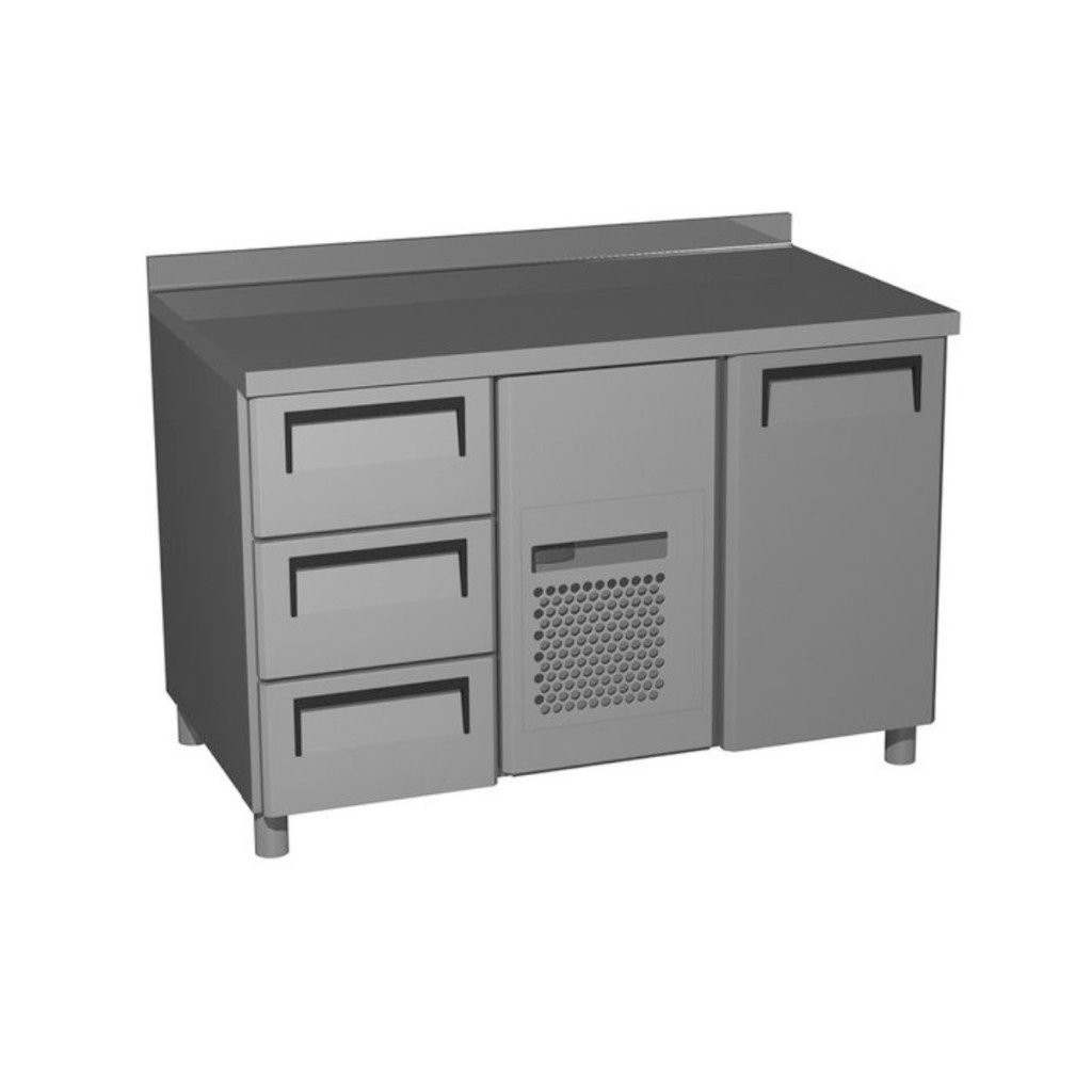 Стол холодильный среднетемпературный Carboma T70 M2-1 (2GN/NT Полюс) с бортом (9006-2 корпус серый 1 дверь, 3 ящ) — профессиональное оборудование для предприятий общественного питания и торговли. Стол предназначен для раскатки теста, подготовки ингредиентов, охлаждения и кратковременного хранения скоропортящихся продуктов и напитков. Стол оснащён 2 полками, тремя выдвижными ящиками и регулируемыми ножками высотой от 90 до 110 мм.