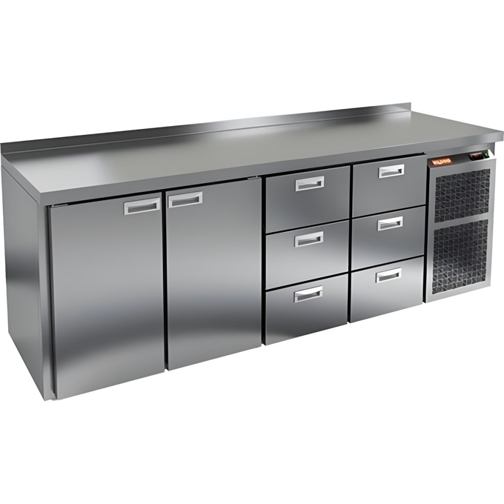 Каталог оборудования Холодильное оборудованиеСтолы охлаждаемыеСтолы холодильные среднетемпературныеСтол холодильный среднетемпературный HiCold GN 1133 BR2 TN Стол холодильный среднетемпературный HiCold GN 1133 BR2 TN Код товара: 062-299 Поделиться: WhatsAppTelegram СравнитьДобавить в КПВ избранное 0 275 932 ₽ В корзину 0 шт Под заказСамовывоз сегодня бесплатно Взять в кредит Купить в лизинг Получить консультацию в WhatsApp Описание Характеристики Отзывы 0 Стол холодильный среднетемпературный HiCold GN 1133 BR2 TN сочетает рабочую поверхность для раскатки теста и подготовки ингредиентов с камерой для охлаждения и кратковременного хранения скоропортящихся продуктов и напитков. Это оборудование отлично подходит для предприятий общественного питания, обеспечивая удобство и высокую производительность. Особенности: Увеличенный объём камеры для хранения большего количества продуктов. Климатическое исполнение Pro Line обеспечивает работу при температуре до +40 °C. Полки и направляющие выполнены по стандарту GN для совместимости с профессиональным оборудованием. Прочный цельнозаливной корпус из нержавеющей стали с 50 мм изоляцией для высокой герметичности и долговечности. Надёжный электронный блок управления с несколькими режимами оттаивания для стабильной работы. Вентилятор повышенной мощности обеспечивает равномерное и быстрое охлаждение. Интеллектуальная система автоматического размораживания. Термическое выпаривание конденсата предотвращает накопление влаги. Энергоэффективный компрессор снижает затраты на электроэнергию. Упрощённый доступ к агрегатам для быстрого и удобного сервисного обслуживания. Двери оборудованы доводчиками для мягкого и плотного закрытия. Регулируемые по высоте низкие ножки обеспечивают устойчивость на любой поверхности. Полки рассчитаны на нагрузку до 50 кг, что позволяет хранить тяжелые продукты. Высота борта 50 мм предотвращает падение продуктов со столешницы. HiCold GN 1133 BR2 TN — это надежное и эргономичное решение для профессиональных кухонь, обеспечивающее эффективное охлаждение и удобство в работе. Высокое качество материалов и продуманные технические решения делают этот холодильный стол практичным, энергоэффективным и простым в обслуживании.Изображение товара, представленного на фото, может отличаться от его фактического вида. Показать все Габаритные размеры2395×700×850 ммДиапазон рабочей температурыот -2 до +10 °CРасположение агрегатаБоковое Материал столешницыНержавеющая Тип столаС дверьми и ящиками Тип двериГлухая Объём730 лКоличество дверей2 штКоличество полок2 штКоличество ящиков6 штРазмер полки530×325 ммНапряжение220 ВМощность0,51 кВтТип охлажденияДинамический Тип оттайкиАвтоматическая СтолешницаС бортом Вес нетто192 кгВес брутто211 кгБрендHicoldВсе холодильные столы HicoldВсе нержавеющие холодильные столы Все холодильные столы с бортом Оставить отзыв Еще никто не оставил отзыв на этот товар Похожие товары Перейти в каталог Под заказ 79 911 ₽ Стол холодильный среднетемпературный HiCold GN 1/TN W Под заказ 104 947 ₽ Стол холодильный среднетемпературный Abat СХС-70 с бортом (дверь) С этим товаром покупают В наличии 96 390 ₽ Шкаф холодильный Полюс Carboma R560 В наличии 58 095 ₽ Витрина холодильная для ингредиентов HICOLD VRTU 1835 1/3 Ранее просмотрено Под заказ 123 074 ₽ Стол холодильный среднетемпературный Ангара СХБ 1,390-500 В наличии 230 301 ₽ Стол холодиль