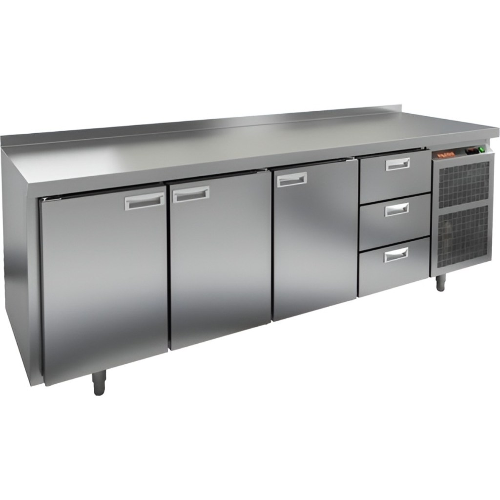 Каталог оборудования Холодильное оборудованиеСтолы охлаждаемыеСтолы морозильные низкотемпературныеСтол морозильный HiCold BN 1113/BT Стол морозильный HiCold BN 1113/BT Код товара: 062-073 Поделиться: WhatsAppTelegram СравнитьДобавить в КПВ избранное 0 251 451 ₽ В корзину 0 шт В наличииСамовывоз сегодня бесплатно Взять в кредит Купить в лизинг Получить консультацию в WhatsApp Описание Характеристики Отзывы 0 Инструкции 2 Стол морозильный HiCold BN 1113/BT предназначен для заморозки и хранения скоропортящихся продуктов и напитков на предприятиях общественного питания и торговли. Он сочетает в себе удобство использования и высокую эффективность. Управление осуществляется с помощью простой и понятной электронной панели. Конструкция корпуса и столешницы выполнена из прочной нержавеющей стали, что обеспечивает долговечность и гигиеничность оборудования. В комплект входят 3 полки, что позволяет удобно организовать внутреннее пространство для хранения различных продуктов. Особенности: Автоматические доводчики дверей с фиксацией в открытом положении — для комфортной загрузки и выгрузки продуктов; Легкозаменяемые магнитные уплотнители — обеспечивают плотное закрытие дверей и снижают теплопотери; Регулируемые по высоте ножки — позволяют устанавливать стол на неровных поверхностях; Толщина столешницы — 50 мм; Толщина теплоизоляции — 50 мм — для сохранения стабильной температуры; Высота борта — 50 мм — предотвращает затекание жидкости и обеспечивает чистоту на рабочем месте. Морозильный стол HiCold BN 1113/BT — это надежное и практичное оборудование, обеспечивающее качественное хранение продуктов и удобство в ежедневной работе персонала кухни.Изображение товара, представленного на фото, может отличаться от его фактического вида. Показать все Габаритные размеры2280×500×850 ммДиапазон рабочей температурыот -18 до -10 °CРасположение агрегатаБоковое Материал столешницыНержавеющая Тип столаС дверьми и ящиками Тип двериГлухая Объём460 лКоличество дверей3 штКоличество полок3 штКоличество ящиков3 штРазмер полки330×325 ммНапряжение220 ВМощность0,75 кВтТип охлажденияДинамический Тип оттайкиАвтоматическая СтолешницаС бортом Вес нетто135 кгВес брутто155 кгБрендHicoldВсе морозильные столы HicoldВсе морозильные столы с бортом Оставить отзыв Еще никто не оставил отзыв на этот товар Паспорт на HICOLD BN 1113/BT.pdfДекларация о соответствии.pdf Ранее просмотрено Под заказ 25 777 ₽ Стол производственный Abat СПРП-6-7 Под заказ 17 078 ₽ Стол производственный Abat СПРП-7-1