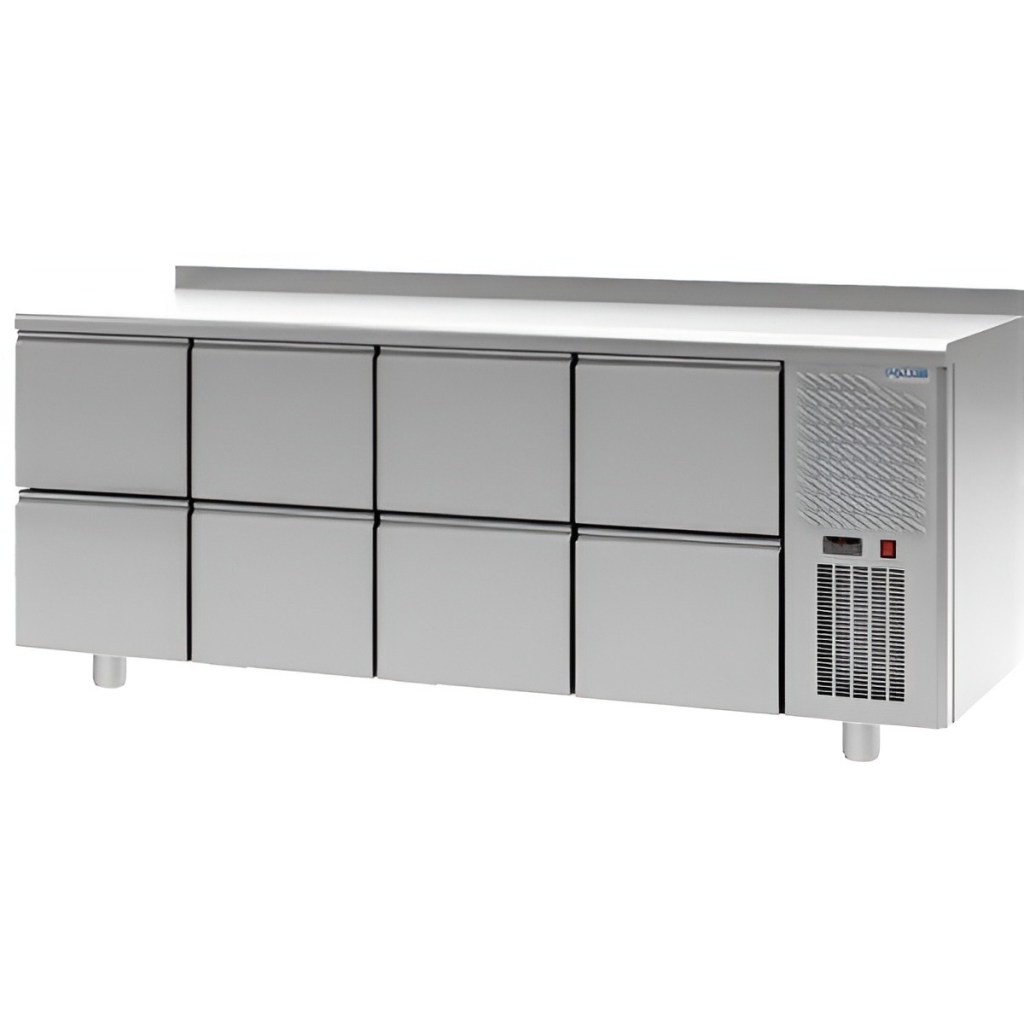 Каталог оборудования Холодильное оборудованиеСтолы охлаждаемыеСтолы морозильные низкотемпературныеСтол морозильный низкотемпературный Polair TB4GN-2222-G Стол морозильный низкотемпературный Polair TB4GN-2222-G Код товара: 062-495 Поделиться: WhatsAppTelegram СравнитьДобавить в КПВ избранное 0 301 395 ₽ В корзину 0 шт Под заказСамовывоз сегодня бесплатно Взять в кредит Купить в лизинг Получить консультацию в WhatsApp Описание Характеристики Отзывы 0 Стол морозильный низкотемпературный Polair TB4GN-2222-G предназначен для хранения продуктов и обработки ингредиентов на рабочей поверхности на предприятиях общественного питания и торговли. Цельнозаливные корпус и двери выполнены из стали, что обеспечивает высокую механическую прочность, надежную термоизоляцию, герметичность и долговечность конструкции. Оборудование рассчитано на работу при температуре окружающей среды до 32 °С и относительной влажности воздуха до 60%. Особенности: Автоматическая оттайка испарителя с помощью ТЭНов и система испарения конденсата. Динамическое охлаждение обеспечивает равномерное распределение температуры. Электронный терморегулятор для точного поддержания температурного режима. Двухъярусный агрегат, полностью выдвигаемый для удобного обслуживания. Все элементы холодильной системы вынесены за пределы охлаждаемого пространства, что увеличивает полезный объем. Экологичный хладагент R290. ПЭН обогрева дверного проема предотвращает образование наледи. ТЭН поддона воздухоохладителя защищает от замерзания конденсата. Класс защиты IP24, защита от попадания влаги. Регулируемые по высоте ножки для устойчивой установки на неровных поверхностях. Толщина столешницы — 40 мм, стенок корпуса — 43 мм. Высота борта — 60 мм предотвращает стекание жидкости. Тип полок: Gastronorm GN 1/1, стандарт для профессиональных кухонь. Polair TB4GN-2222-G — надежный и удобный морозильный стол для профессиональных кухонь, который обеспечивает удобную обработку ингредиентов и надежное хранение замороженных продуктов при стабильной температуре.Изображение товара, представленного на фото, может отличаться от его фактического вида. Показать все Габаритные размеры2060×705×910 ммДиапазон рабочей температурыдо -18 °CРасположение агрегатаБоковое Материал столешницыНержавеющая Тип столаС ящиками Объём600 лТип гастроемкостейGN 1/1 Количество ящиков8 штНапряжение220 ВМощность0,6 кВтТип охлажденияДинамическое Тип оттайкиАвтоматическая ХладагентR290 СтолешницаС бортом Вес нетто165 кгВес брутто195 кгБрендPolairВсе морозильные столы PolairВсе морозильные столы с бортом Оставить отзыв Еще никто не оставил отзыв на этот товар Ранее просмотрено Под заказ 68 463 ₽ Витрина холодильная для ингредиентов HICOLD VRX 1600 1/3
