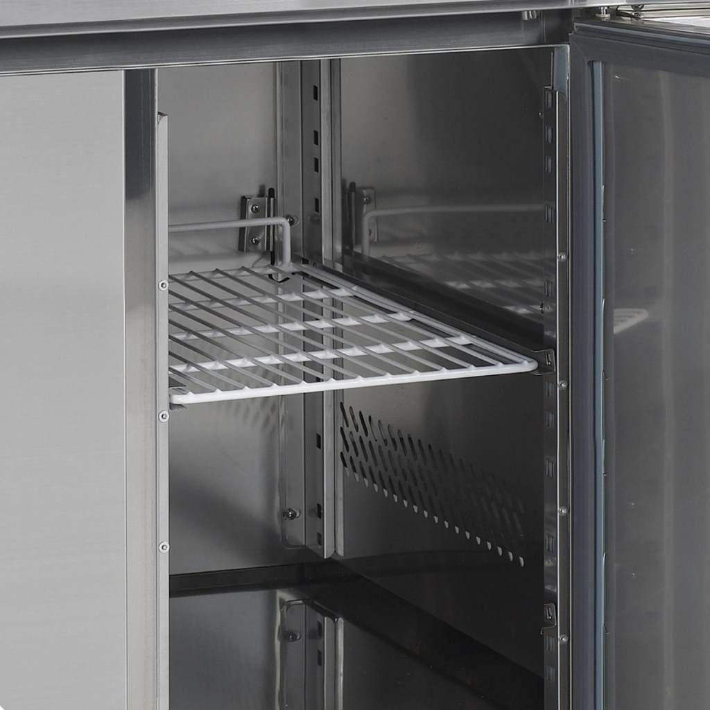 Каталог оборудования Холодильное оборудованиеСтолы охлаждаемыеСтолы морозильные низкотемпературныеСтол морозильный TEFCOLD CF7310 Стол морозильный TEFCOLD CF7310 Код товара: 010-257 Поделиться: WhatsAppTelegram СравнитьДобавить в КПВ избранное 0 218 857 ₽ В корзину 0 шт В наличииСамовывоз сегодня бесплатно Взять в кредит Купить в лизинг Получить консультацию в WhatsApp Описание Характеристики Отзывы 0 Стол морозильный TEFCOLD CF7310 — профессиональное оборудование для раскатки теста, обработки, заморозки и долговременного хранения продуктов, полуфабрикатов, напитков и мороженого на предприятиях общественного питания и торговли. Корпус и внутренняя отделка выполнены из нержавеющей стали AISI 304, что обеспечивает долговечность, гигиеничность и лёгкость ухода. Особенности модели: Динамическое охлаждение — равномерное распределение холода по всему объёму Автоматическое размораживание — поддержание стабильной работы без образования наледи Электронный термостат и градусник — точное управление температурой Хладагент R404a, подзарядка — 0,09 кг Съёмная столешница с бортом — удобство работы и уборки Самозакрывающиеся двери 3 полки GN1/1 (530 × 325 мм) — эффективная организация внутреннего пространства Регулируемые по высоте ножки — устойчивость на любой поверхности Климатический класс 4 — работа при температуре до +30 °C Полезный объём: 402 л Мощность: 0,7 кВт Энергопотребление: 10,15 кВт/сутки Внутренние размеры: 1337 × 530 × 589 мм Уровень шума: 42 дБ TEFCOLD CF7310 — надёжный и функциональный морозильный стол для профессиональных кухонь. Он сочетает рабочую поверхность для раскатки теста с вместительной морозильной камерой, обеспечивая удобство работы, долговременное хранение продуктов и стабильный температурный режим.Изображение товара, представленного на фото, может отличаться от его фактического вида. Показать все Габаритные размеры1795×700×980 ммДиапазон рабочей температурыот -20 до -10 °CРасположение агрегатаБоковое Материал столешницыНержавеющая Тип столаС дверьми Тип двериГлухая Общий объем417 лПолезный объем402 лКоличество дверей3 штРазмер полки530×325 ммНапряжение230 ВРасход электроэнергии в сутки6,95 кВт/сутТип охлажденияДинамический Тип оттайкиАвтоматическая Климатический класс4 ХладагентR404a СтолешницаС бортом Уровень шума42 дБГабариты в упаковке1830×750×1010 ммВес нетто152 кгВес брутто162 кгБрендTefcold Оставить отзыв Еще никто не оставил отзыв на этот товар Похожие товары Перейти в каталог Под заказ 125 817 ₽ Стол морозильный HURAKAN HKN-GN3BT Под заказ 166 404 ₽ Стол морозильный Abat СХН-70-02 без борта (дверь, дверь, дверь) С этим товаром покупают В наличии 201 690 ₽ Шкаф морозильный Полюс Carboma F1400 Ранее просмотрено Под заказ 97 400 ₽ Витрина кондитерская Carboma KC70 N 1,31 (KC70 N 1,3-1 LIGHT CUBE) нейтральная Под заказ 141 900 ₽ Стол холодильный среднетемпературный Abat СХС-60-02 без борта (дверь, дверь, дверь)