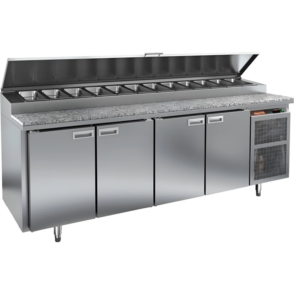 Каталог оборудования Холодильное оборудованиеСтолы охлаждаемыеСтолы холодильные для пиццыСтол холодильный для пиццы HiCold PZ1-1111GN (1/3) камень Стол холодильный для пиццы HiCold PZ1-1111GN (1/3) камень Код товара: 064-684 Поделиться: WhatsAppTelegram СравнитьДобавить в КПВ избранное 0 290 062 ₽ В корзину 0 шт Под заказСамовывоз сегодня бесплатно Взять в кредит Купить в лизинг Получить консультацию в WhatsApp Описание Характеристики Отзывы 0 Инструкции 2 Стол холодильный для пиццы HiCold PZ1-1111GN (1/3) камень предназначен для профессиональных кухонь ресторанов, кафе и предприятий торговли. Он совмещает просторную рабочую поверхность из камня для раскатки теста и подготовки ингредиентов с охлаждаемым объёмом для кратковременного хранения продуктов и напитков. Такой подход экономит место и ускоряет работу повара — всё необходимое всегда под рукой. Основные особенности: Столешница из камня — устойчива к механическим повреждениям, не впитывает запахи и легко очищается Динамическая система охлаждения для равномерного распределения холода Автоматическая оттайка для бесперебойной работы Электронная панель управления для точной регулировки температуры 4 вместительные полки формата GN 1/1 (размер 530×325 мм) Автоматические доводчики дверей с фиксатором открытого положения Легкозаменяемые магнитные уплотнители для поддержания герметичности Открытая агрегатная часть для удобного обслуживания Регулируемые по высоте ножки для установки по уровню Максимальная глубина гастроёмкостей: 100 мм Глубина рабочей поверхности: 324 мм Толщина столешницы и теплоизоляции: 50 мм Вместимость салат-бара: до 12 гастроёмкостей HICOLD PZ1-1111/GN со столешницей из камня — это прочный, гигиеничный и удобный стол для пиццы, сочетающий рабочую поверхность и холодильный блок. Идеален для интенсивной эксплуатации на профессиональной кухне.Изображение товара, представленного на фото, может отличаться от его фактического вида. Показать все Габаритные размеры2280×700×1000 ммДиапазон рабочей температурыот +2 до +10 °CРасположение агрегатаБоковое Материал столешницыГранитная Тип столаС дверьми Тип двериГлухая Объём660 лТип гастроемкостейGN 1/3 Количество дверей4 штРазмер полки530×325 ммНапряжение220 ВМощность0,48 кВтТип охлажденияДинамическое Тип оттайкиАвтоматическая Габариты в упаковке2380×840×1140 ммВес нетто208 кгВес брутто228 кгБрендHicoldВсе холодильные столы для пиццы Hicold Оставить отзыв Еще никто не оставил отзыв на этот товар Паспорт на HICOLD PZ1-1111GN (1/3).pdfДекларация о соответствии.pdf Ранее просмотрено Под заказ 256 672 ₽ Стол холодильный для пиццы HiCold PZ2-111GN (1/6) камень со стеклом