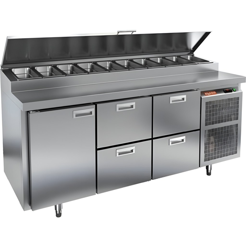 Каталог оборудования Холодильное оборудованиеСтолы охлаждаемыеСтолы холодильные для пиццыСтол холодильный для пиццы HiCold PZ1-122N (1/3) Стол холодильный для пиццы HiCold PZ1-122N (1/3) Код товара: 064-709 Поделиться: WhatsAppTelegram СравнитьДобавить в КПВ избранное 0 275 572 ₽ В корзину 0 шт Под заказСамовывоз сегодня бесплатно Взять в кредит Купить в лизинг Получить консультацию в WhatsApp Описание Характеристики Отзывы 0 Стол холодильный для пиццы HiCold PZ1-122GN (1/3) — профессиональное оборудование для предприятий общественного питания и торговли. Он сочетает рабочую поверхность для раскатки теста и подготовки ингредиентов с охлаждаемым блоком для кратковременного хранения скоропортящихся продуктов и напитков. Такое решение обеспечивает максимальное удобство — все необходимые компоненты всегда находятся под рукой. Корпус и столешница выполнены из нержавеющей стали, что гарантирует долговечность, устойчивость к повреждениям и лёгкость ухода. Основные особенности: Нержавеющая столешница и корпус — прочность, гигиеничность и лёгкость очистки Динамическая система охлаждения — равномерное распределение холода Автоматическая оттайка — стабильная работа без образования наледи Электронная панель управления — точная настройка температуры 1 дверца и 4 выдвижных ящика — удобная организация внутреннего пространства Автоматические доводчики дверцы и ящиков — комфорт при работе Легкозаменяемые магнитные уплотнители — поддержание герметичности Открытая агрегатная часть — лёгкий доступ для обслуживания Регулируемые по высоте ножки — установка на неровных поверхностях Максимальная глубина гастроёмкостей: 100 мм Глубина рабочей поверхности: 324 мм Толщина столешницы и теплоизоляции: 50 мм Вместимость салат-бара: до 10 гастроёмкостей Стол холодильный HiCold PZ1-122GN (1/3) — надёжный и функциональный холодильный стол для пиццы и салатов. Продуманная организация хранения и удобство эксплуатации обеспечивают быстрый доступ к ингредиентам и высокую производительность на профессиональной кухне.Изображение товара, представленного на фото, может отличаться от его фактического вида. Показать все Габаритные размеры1835×700×1000 ммДиапазон рабочей температурыот +2 до +10 °CРасположение агрегатаБоковое Материал столешницыНержавеющая Тип столаС дверьми и ящиками Тип двериГлухая Объём505 лТип гастроемкостейGN 1/3 Количество дверей1 штКоличество ящиков4 штРазмер полки530×325 ммНапряжение220 ВМощность0,5 кВтТип охлажденияДинамическое Тип оттайкиАвтоматическая Габариты в упаковке2000×850×1140 ммВес нетто172 кгВес брутто200 кгБрендHicoldВсе холодильные столы для пиццы HicoldВсе нержавеющие холодильные столы для пиццы Оставить отзыв Еще никто не оставил отзыв на этот товар Ранее просмотрено Под заказ 244 971 ₽ Стол холодильный для пиццы HiCold PZ1-112GN (1/3H)
