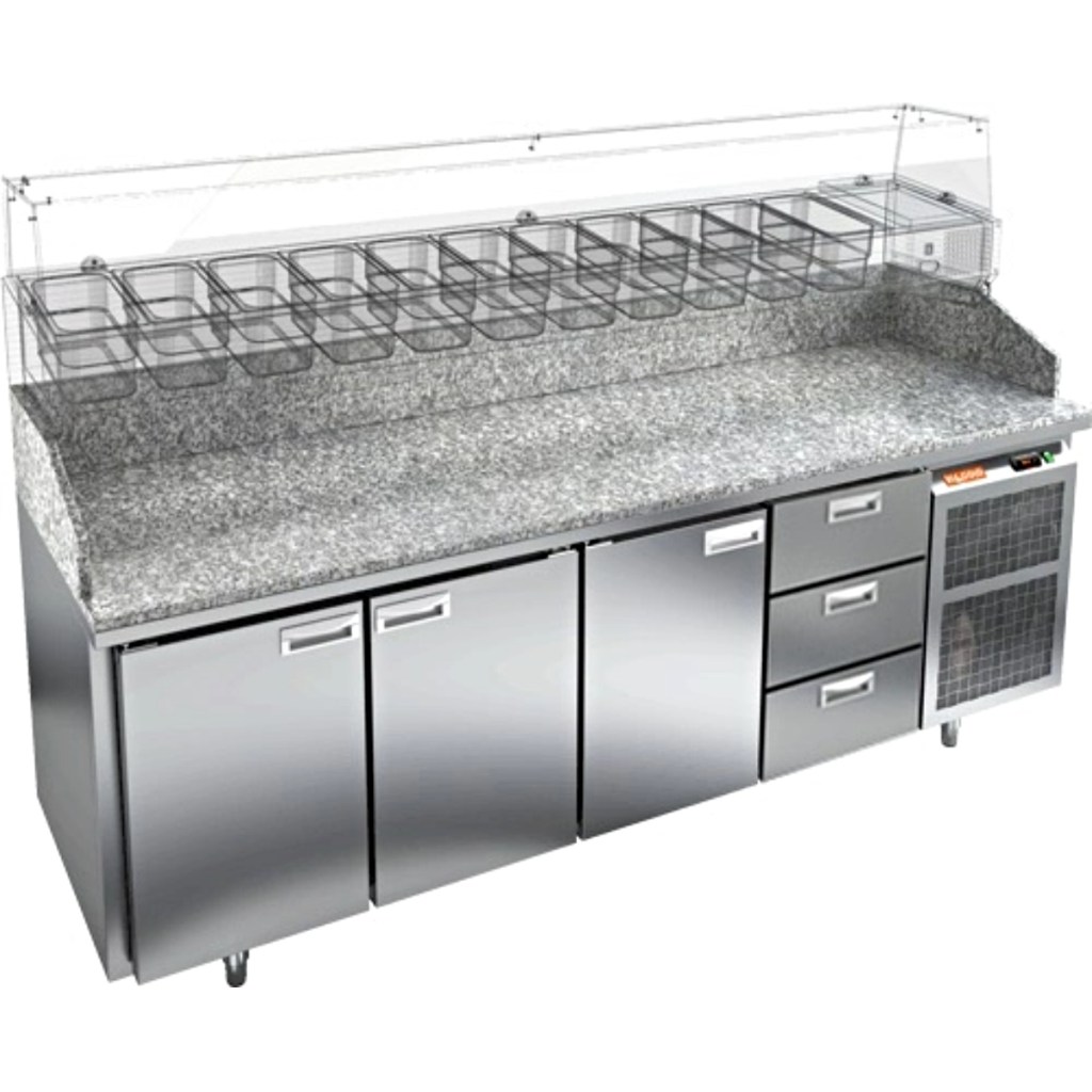 Каталог оборудования Холодильное оборудованиеСтолы охлаждаемыеСтолы холодильные для пиццыСтол холодильный для пиццы HiCold PZ3-1113/GN камень Стол холодильный для пиццы HiCold PZ3-1113/GN камень Код товара: 065-017 Поделиться: WhatsAppTelegram СравнитьДобавить в КПВ избранное 0 330 022 ₽ В корзину 0 шт Под заказСамовывоз сегодня бесплатно Взять в кредит Купить в лизинг Получить консультацию в WhatsApp Описание Характеристики Отзывы 0 Стол холодильный для пиццы HiCold PZE3-1113/GN камень предназначен для использования в пиццериях, кафе, магазинах и ресторанах. Он идеально подходит для раскатки теста, подготовки ингредиентов и кратковременного хранения скоропортящихся продуктов. Витрина приобретается отдельно. Стол сочетает корпус из нержавеющей стали и гранитную столешницу, которая устойчива к механическим и температурным нагрузкам и удобна в работе с тестом. Такая конструкция обеспечивает долговечность, гигиеничность и простоту ухода. Особенности модели: Охлаждение: динамическое — равномерное поддержание температуры Оттайка: автоматическая — удобство и экономия времени Панель управления: электронная — точная настройка температуры Ножки: регулируемые по высоте — устойчивость на неровной поверхности Двери: 3 глухие дверцы с автоматическими доводчиками и фиксатором открытого положения Ящики: 3 выдвижных ящика — удобное хранение ингредиентов Уплотнители: легкозаменяемые магнитные — герметичность и простота обслуживания Толщина теплоизоляции: 50 мм — сохранение холода и энергоэффективность Рабочая поверхность: глубина 680 мм — удобство работы HiCold PZE3-1113/GN камень— это надёжный и функциональный холодильный стол для пиццы, который сочетает прочность, эргономику и эффективное охлаждение. Благодаря гранитной столешнице, корпусу из нержавеющей стали, двум глухим дверям и двум выдвижным ящикам он станет универсальным решением для профессиональной кухни. Изображение товара, представленного на фото, может отличаться от его фактического вида. Показать все Габаритные размеры2280×700×1050 ммДиапазон рабочей температурыот +2 до +10 °CРасположение агрегатаБоковое Материал столешницыГранитная Тип столаС дверьми и ящиками Тип двериГлухая Объём660 лКоличество дверей3 штКоличество ящиков3 штРазмер полки530×325 ммНапряжение220 ВМощность0,5 кВтТип охлажденияДинамическое Тип оттайкиАвтоматическая Габариты в упаковке2430×850×1140 ммВес нетто270 кгВес брутто320 кгБрендHicoldВсе холодильные столы для пиццы HicoldВсе нержавеющие холодильные столы для пиццы Оставить отзыв Еще никто не оставил отзыв на этот товар Ранее просмотрено Под заказ 173 872 ₽ Стол холодильный для пиццы HiCold PZE1-11GN (1/3) камень Под заказ 247 672 ₽ Стол холодильный для пиццы HiCold PZE1-1111GN (1/3) камень