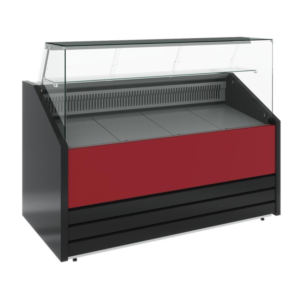 Фронтальная декоративная панель может быть выполнена в нестандартных цветах по выбору производителя, что позволяет подчеркнуть фирменный стиль и вписать витрину в цветовую гамму или дизайн торгового помещения, делая её не только функциональной, но и эстетически привлекательной.