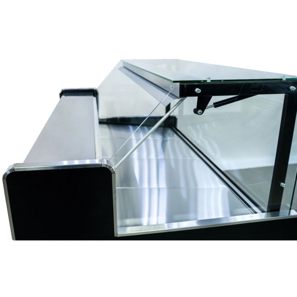 Каталог оборудования Холодильное оборудованиеВитрины холодильныеВитрины холодильные универсальные от -5 до +5 °СВитрина холодильная универсальная Ангара 2 КУБ 1,3 динамика Витрина холодильная универсальная Ангара 2 КУБ 1,3 динамика Код товара: 066-569 Поделиться: WhatsAppTelegram СравнитьДобавить в КПВ избранное 0 84 700 ₽ В корзину 0 шт В наличииСамовывоз сегодня бесплатно Взять в кредит Купить в лизинг Получить консультацию в WhatsApp Описание Характеристики Отзывы 0 Витрина холодильная универсальная Ангара 2 КУБ 1,3 динамика предназначена для демонстрации и кратковременного хранения продуктов с различными требованиями к температуре — от слегка замороженных до охлаждённых. Это делает её универсальным решением для магазинов, кафе, гастрономических отделов и открытых торговых площадок. Ровное расположение витрины обеспечивается регулируемыми опорами, что гарантирует правильный сбор конденсата и тихую работу оборудования. Внутреннее LED-освещение ярко подсвечивает продукцию, потребляет минимум энергии и практически не нагревает воздух внутри камеры. Особенности модели: Универсальная система охлаждения — поддержание температуры как для охлаждённых, так и для слегка подмороженных продуктов. Компрессорный агрегат — Embraco Aspera или Secop (Danfoss) для стабильного охлаждения. Микродвигатель EBM-PAPST — обеспечивает равномерное распределение воздуха и тихую работу. Прочные стеклянные элементы — лобовое стекло 6 мм, боковые стекла 6 мм. Материалы поверхности и подтоварников — нержавеющая сталь и оцинкованная сталь с полимерным покрытием для долговечности и гигиеничности. Вместительный подтоварник — дополнительное место для хранения продукции. Автоматическое оттаивание испарителя — талая вода собирается в специальной ёмкости. Электронный блок управления — Elitech ETC-974 с двумя датчиками и усиленным реле. Хладагент — экологичный и безопасный R-134a / R-404a. Испаритель — SEST LUVE (Италия). Витрина универсальная Ангара 2 КУБ 1,3 динамика — многофункциональная витрина, подходящая для хранения как охлаждённых, так и слегка замороженных продуктов. Обеспечивает равномерное охлаждение, удобство эксплуатации и долговечность, делая её оптимальным выбором для магазинов, гастрономических отделов и кафе с разнообразной продукцией.Изображение товара, представленного на фото, может отличаться от его фактического вида. Показать все Габаритные размеры1320×980×1260 ммДиапазон рабочей температурыот -5 до +5 °CПлощадь выкладки0,81 м²Длина1320 ммГлубина980 ммВысота1260 ммПодсветкаЕсть Размер выкладки654 ммПолезный объем190 лХолодообеспечениеВстроенное Тип охлажденияДинамическое Тип оттайкиАвтоматическая Температура эксплуатацииот +12 до +35 °CХладагентR134a, R404a Напряжение220 ВМощность0,295 кВтРасход электроэнергии в сутки7,1 кВт/сутГабариты в упаковке1500×1350×1200 ммОбъём (брутто)2,43 м³Вес нетто140 кгВес брутто240 кгБрендАнгараВсе витрины холодильные универсальные от -5 до +5 °С 1,3 м Оставить отзыв Еще никто не оставил отзыв на этот товар