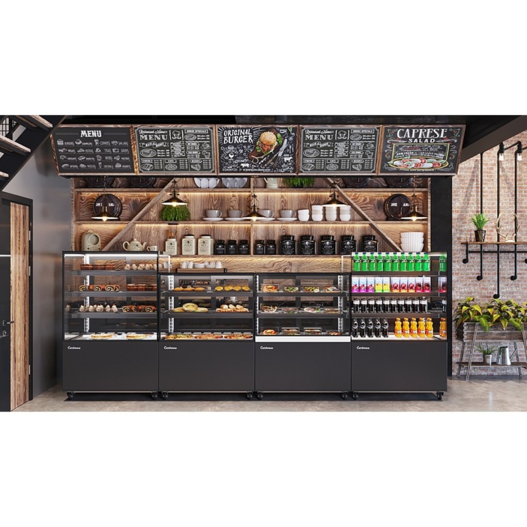 Carboma KC84-130 N 1,5-1 (9005) — современная и функциональная витрина, которая обеспечивает удобное размещение и эффектную демонстрацию продукции, повышает визуальную привлекательность экспозиции и идеально подходит для любой конфигурации торгового или ресторанного помещения.